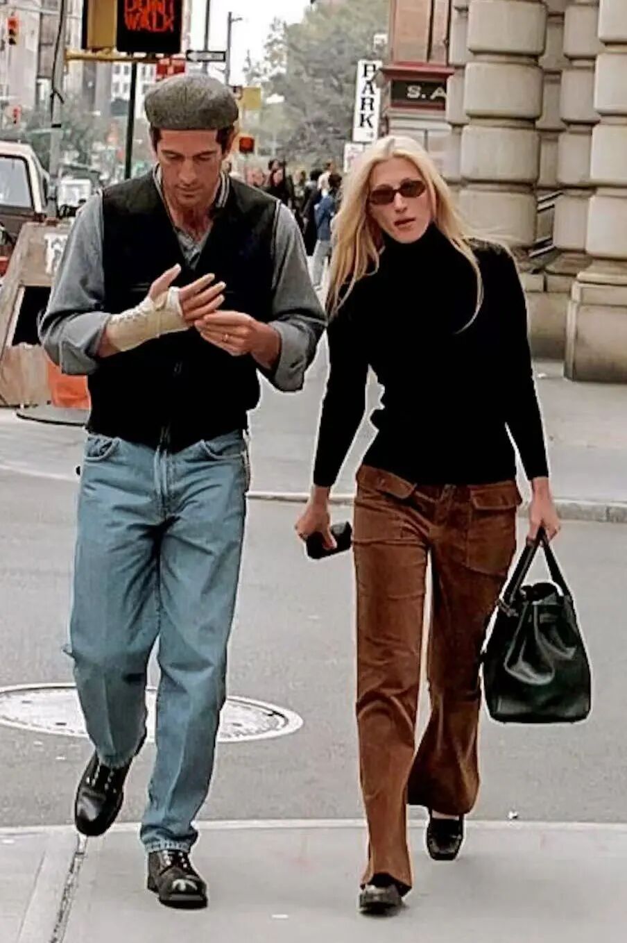 基础单品结合经典配色,顺直金发搭配黑色发箍和椭圆太阳镜,不难让人联想到90年代风格偶像Carolyn Bessette-Kennedy——这位时髦女士的故事被拍成剧集《美国爱情故事》,即将在小荧幕播出。