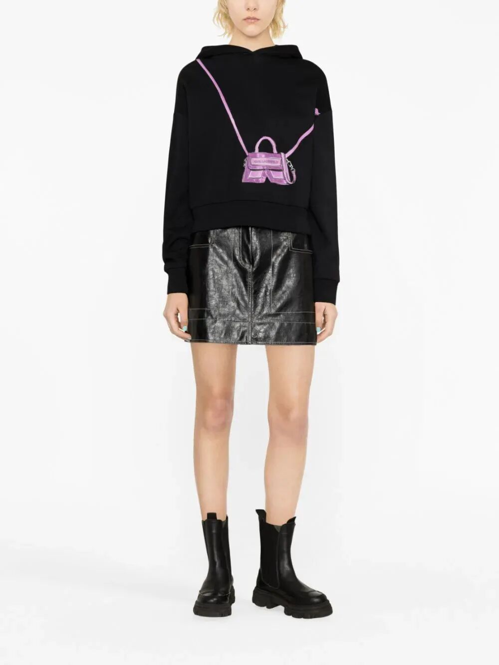 K/Bag 图案印花连帽衫 ¥2,349 这款来自品牌Karl Lagerfeld的K/Bag图案印花连帽卫衣以黑色为基调,上面印有兰紫色的挂包印花,立马变得个性十足。卫衣采用了有机棉混纺和环保再生涤纶混纺,至少50%的材料来自环保回收或环保再生来源。长袖设计搭配弹性松紧边,既舒适又时尚。