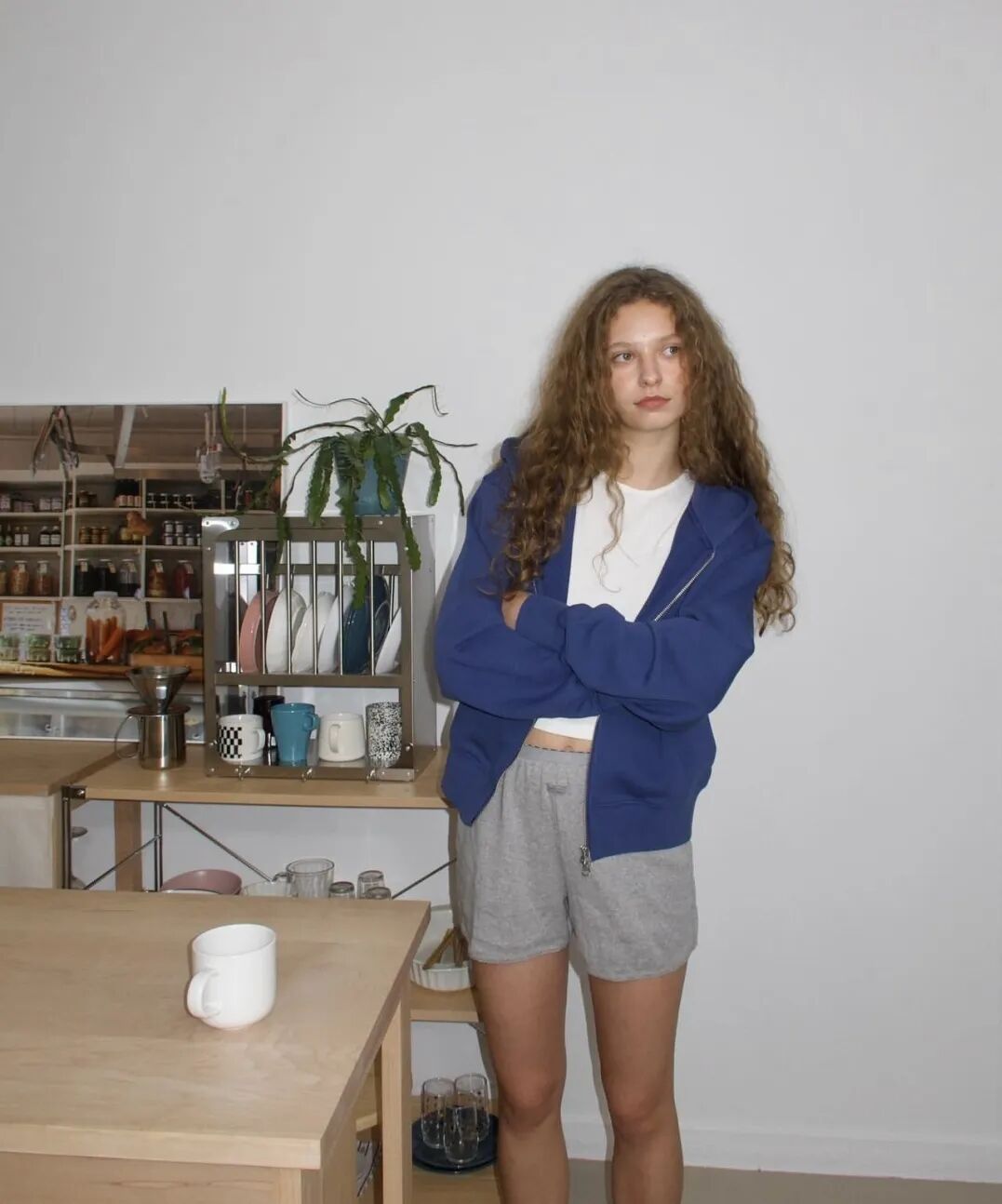 近来也很流行一种棉麻材质的短裤,用来搭配卫衣,纯欲感拉满,无论是外出还是居家穿,都能hold住。