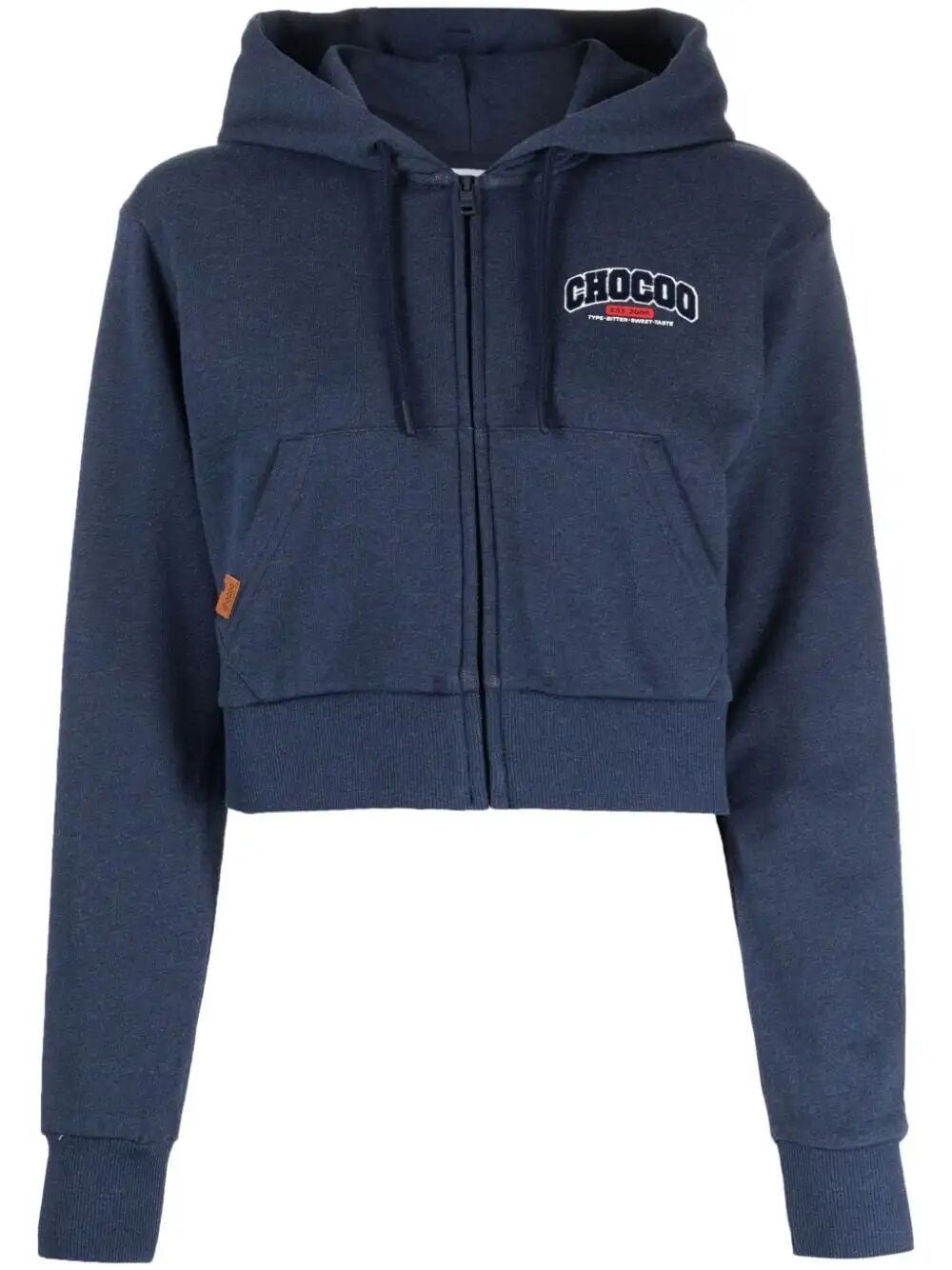 短款拉链连帽衫 ¥948 这款CHOCOOLATE的短款拉链连帽卫衣采用经典的海军蓝色,选用优质棉料保证舒适度与质感。胸前的logo刺绣增添了品牌的辨识度,抽绳兜帽设计不仅实用,更增添了一丝休闲感。