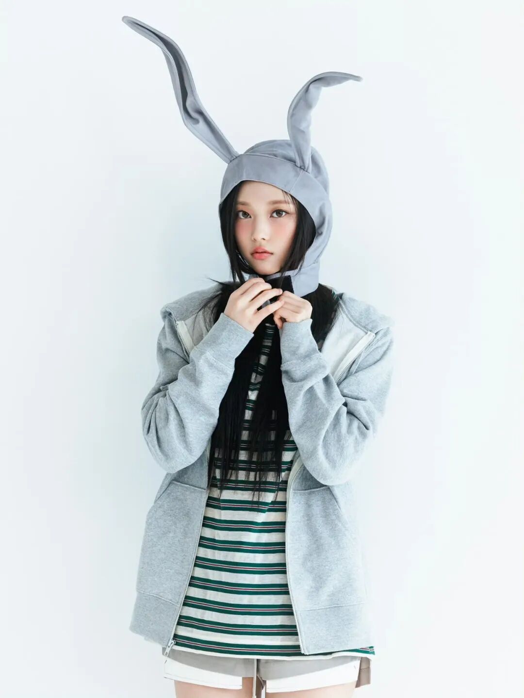 就连刚刚回归的New Jeans成员,在宣传照中也是选择了各种形式的卫衣。