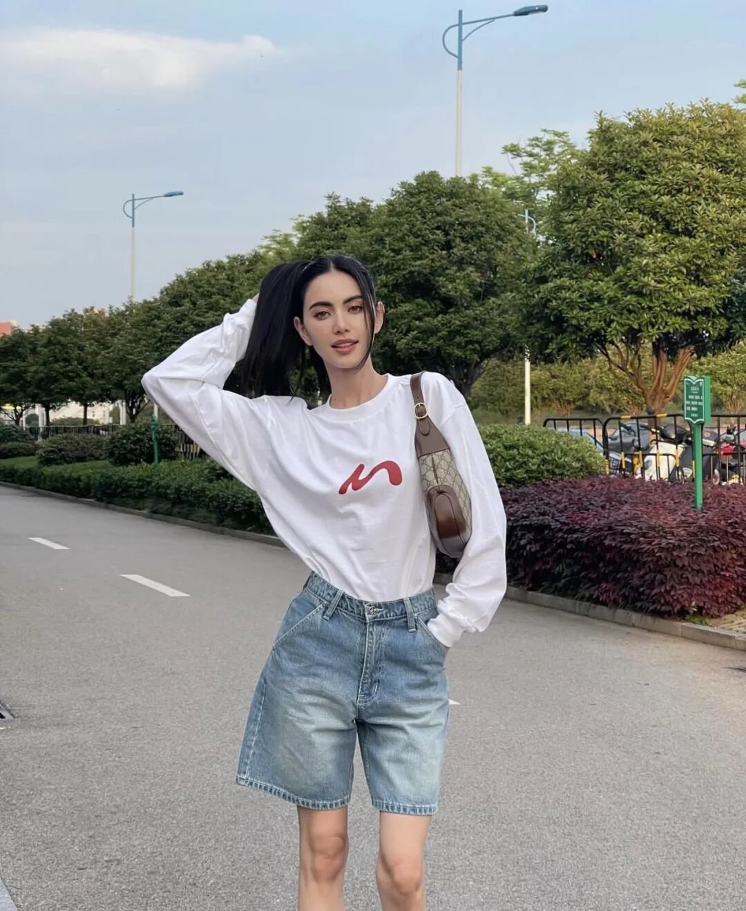 来参加《乘风2024》的泰国女明星Mai,则是用卫衣搭配牛仔短裤,梳起高马尾,充满活力。