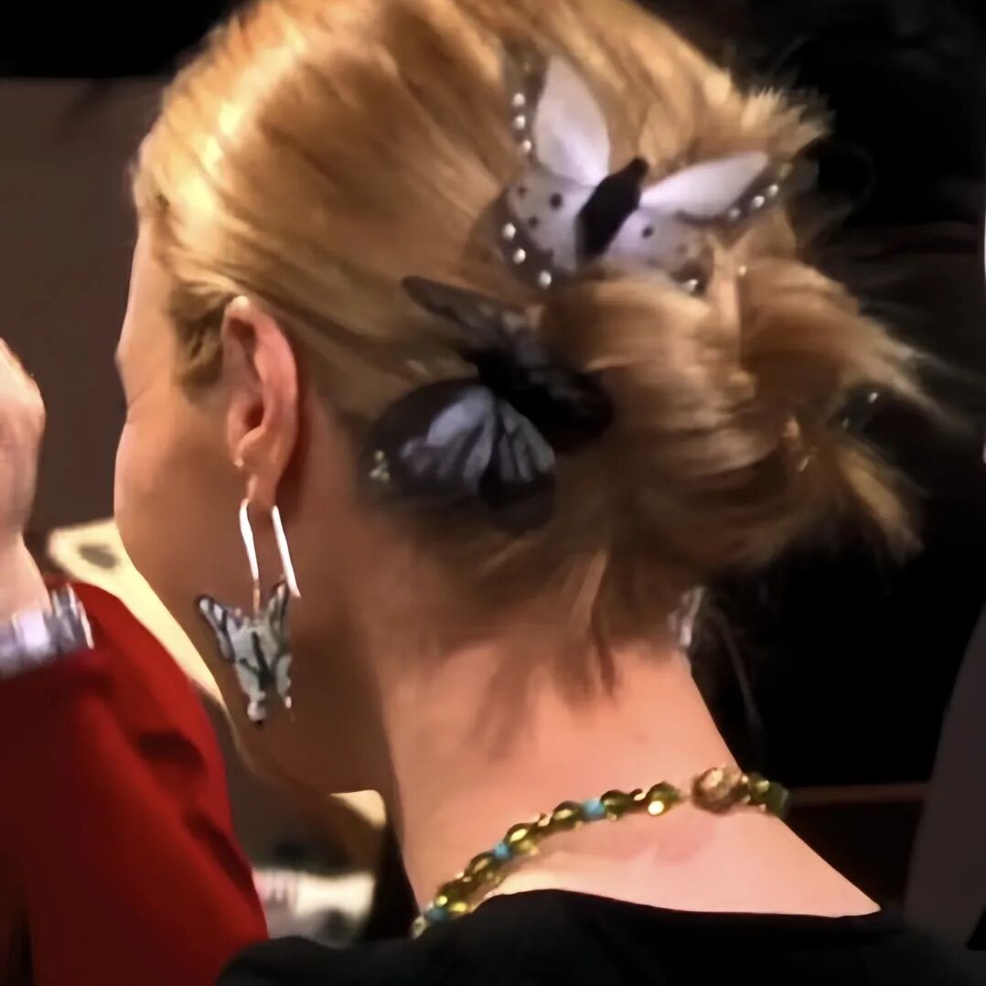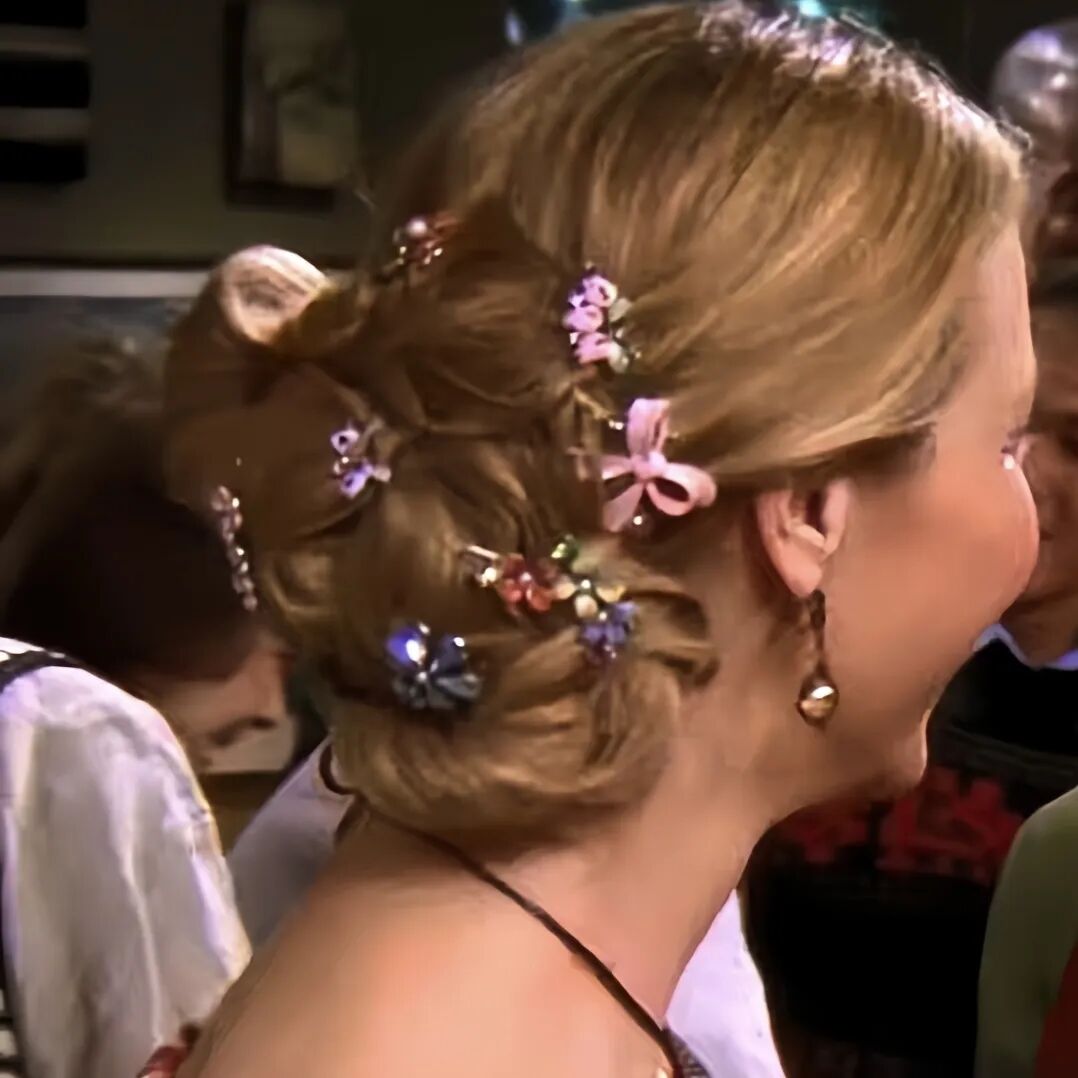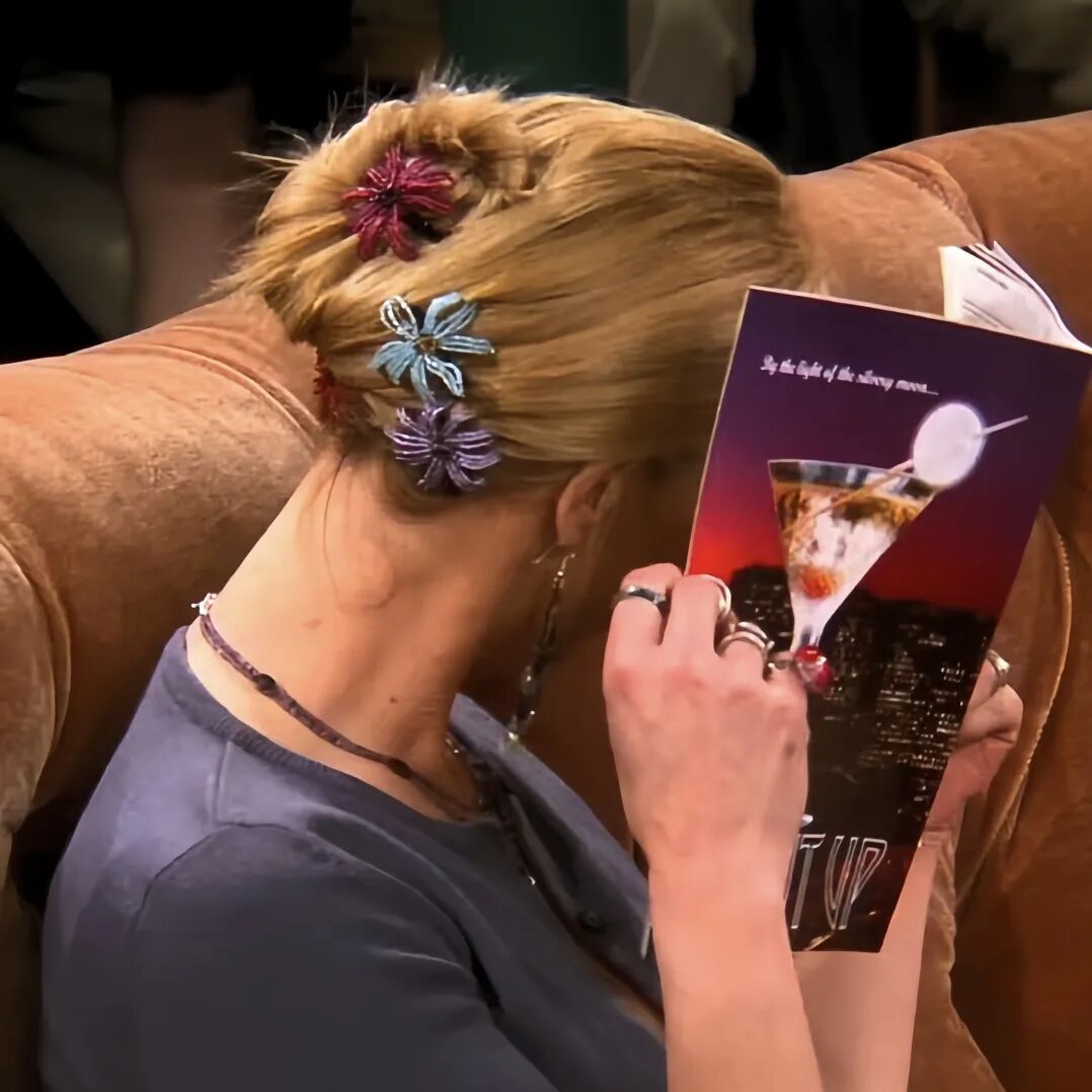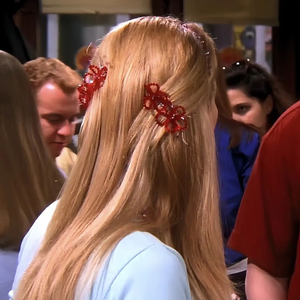 《老友记》中的菲比,总是喜欢用各种形状的小发夹点缀自己的头发,有时候是花朵宝石,有时候是蜻蜓、蝴蝶,有时候甚至是一头满天星,感觉她的头发像个生态系统丰富的小花园。