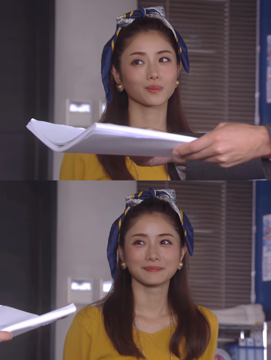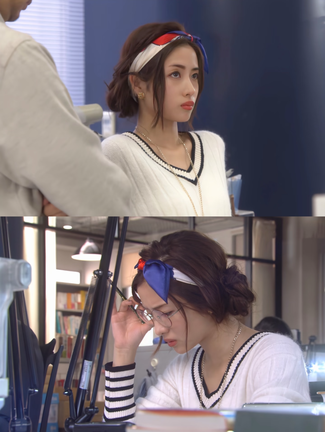 日剧《校阅女孩河野悦子》中,女主将各式各样的丝巾用到了极致。 可以将细长丝巾绑在发尾,温柔又灵动;也可以编进头发里,装饰感更强;要么就干脆在头顶打个结,把丝巾当成个性十足的发带来用。温柔、复古、元气、法式……一条丝巾就能解锁多种发饰风格。