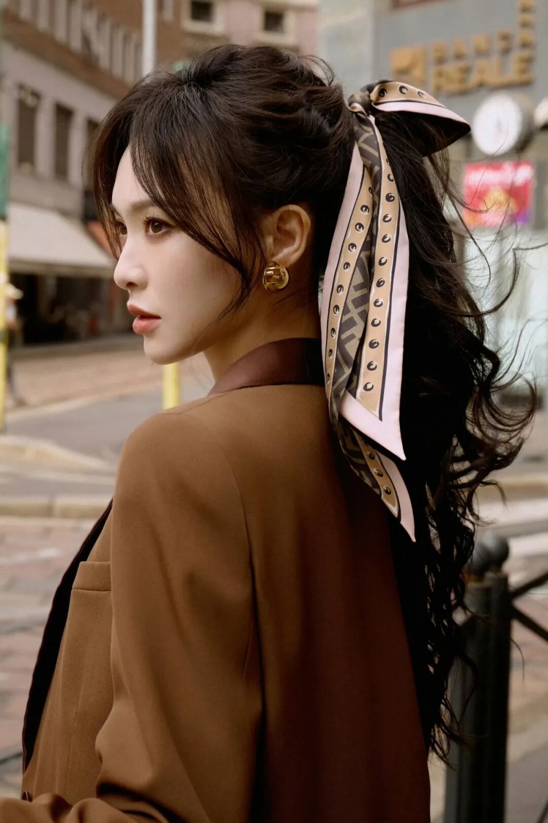 不局限于单一功能的发圈、发夹,又想要让发饰面积更大更有存在感,可以翻翻家里有没有丝巾。