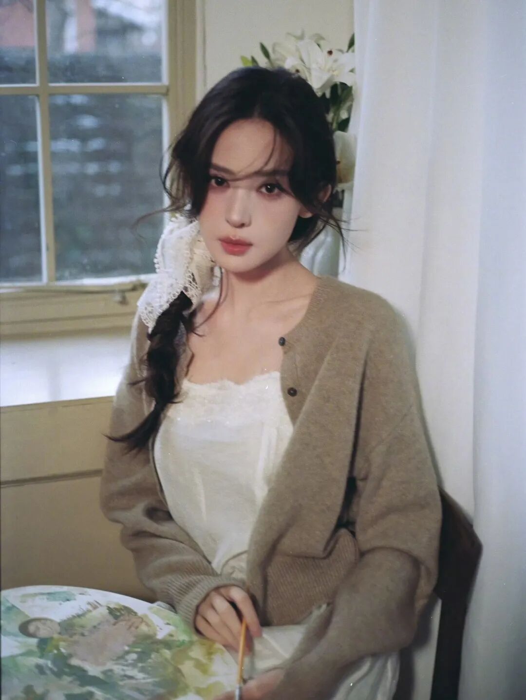 Tips: 选择发饰的简单小技巧 好看的发饰,选对永远比买贵更重要。掌握以下两个不费力的小原则,选到最适合自己的发饰。 1. 和服装颜色呼应,打造套装感 想让发饰看起来不突兀、和穿搭更有整体感,最简单易操作的办法就是让发饰和衣服颜色呼应。 赵今麦用蓝色蝴蝶结搭配同色系穿搭,干净又元气,视觉上也很清爽舒服。 张元英的Hello Kitty小发夹,上面没有华丽装饰,但可爱的形状和温柔的粉色衣服完美统一,少女感和协调感一步到位。 经典电影里也藏着这个小心机:《天生一对》里的双胞胎,在婚纱设计师妈妈身边长大的英式风格的小女孩儿,发箍和衣服都是成套的,乖巧又有记忆点,轻松打造上流优雅审美。 《独领风骚》中女主的发饰和上衣,也总是颜色一致,把美式高中学院风玩得淋漓尽致。 2. 结合自身发质选择发饰材质 首先发质不同,适合的发饰材质也不一样,选对了才会更显质感。 细软发质可以选择珍珠、水钻、金属这类有光泽感的发饰,轻轻点缀就能增加存在感,不会被头发“吃掉”细节。 粗硬的发质,则更适合醋酸、布艺这类有分量、有质感的材质,能压住头发毛躁感,整体更利落高级。 反之,如果细软发质选择厚重、硬挺的材质,就很容易压塌头顶。 但如果是发量偏多、发质顺滑的人,思路就完全不同。 这类发质本身就有足够的存在感,过多的装饰反而会显得拥挤。相比闪耀型发饰,更适合选择有结构感、低饱和度的材质——比如哑光板材、硬质树脂。 像上世纪90年代众人瞩目的Carolyn Bessette,在这组经典的街拍图里,她佩戴着宽版的玳瑁板材发箍,把头发整体向后梳,顺直的金发在被发箍压住之后依然可以保持干净的头型线条。 玳瑁材质的深棕纹理与她的发色相近,既不会喧宾夺主,又能稳住整体轮廓,搭配利落黑大衣与窄框墨镜,不张扬却自带贵气,完美诠释了什么叫“高级藏在细节里”。