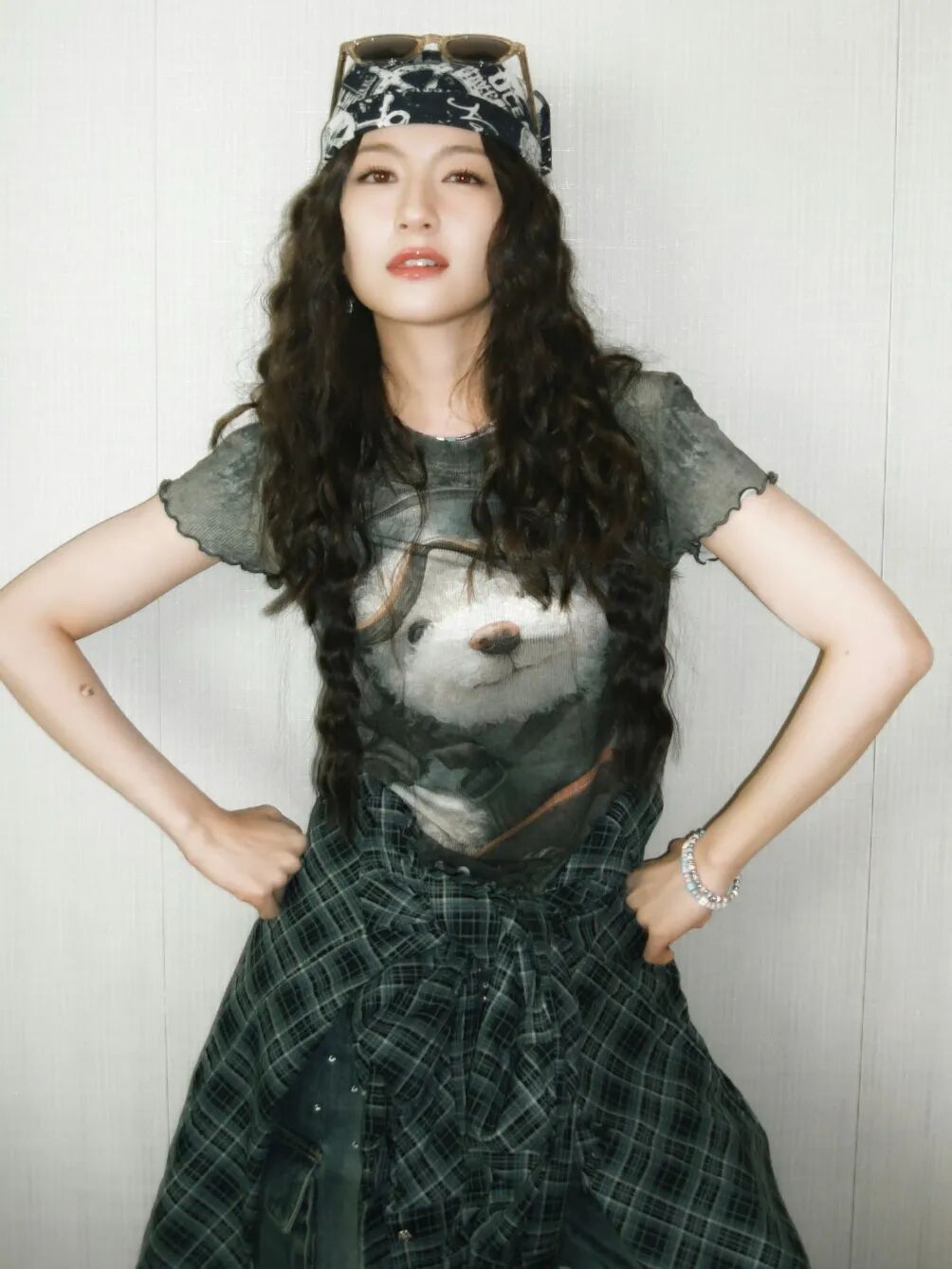 很多街拍造型都是因为发带的存在而被画龙点睛。