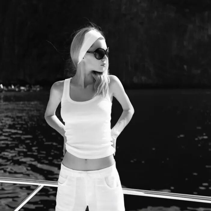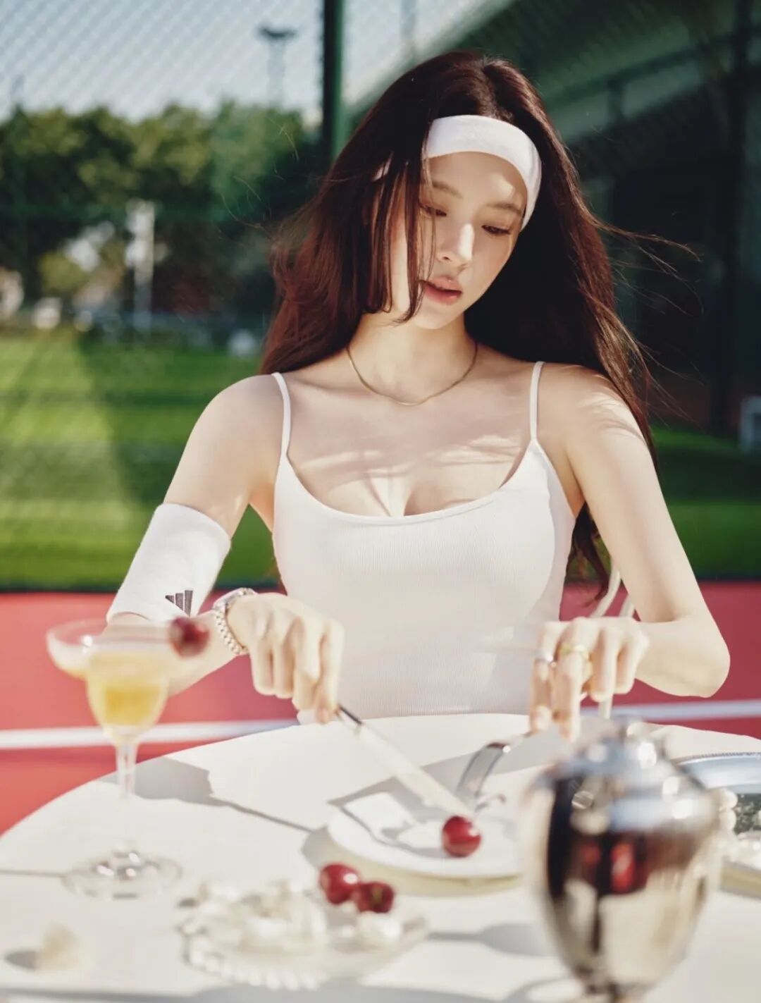 欧阳娜娜这套白色运动套装,本身平平无奇,但是加上一条白色发带之后,立马变得不一样了。开始自动脑补影视剧中,“老钱家族”到海岛度假,不谙世事的小女儿起床之后,漫不经心地拿了一套衣服,先到海边球场运动一下唤醒身体,再不紧不慢地去享受一顿早餐。
