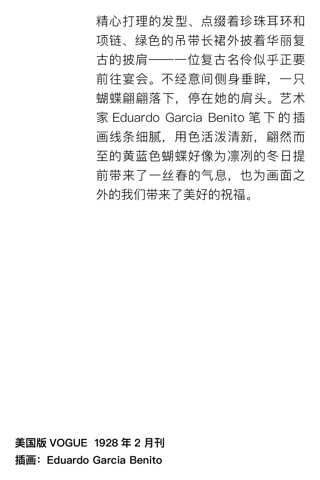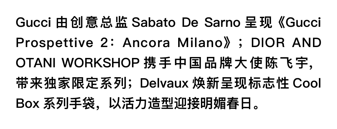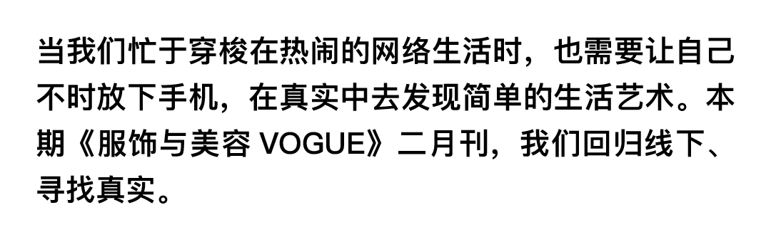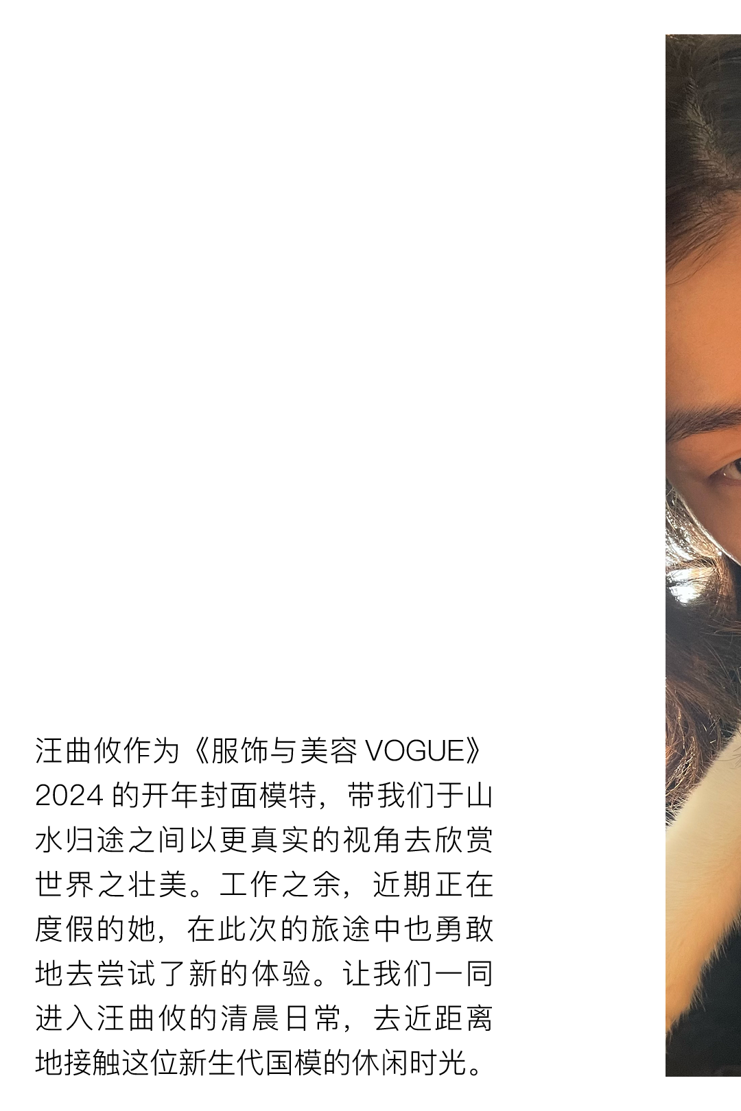 大家周一早。 在《服饰与美容VOGUE》一月刊中,我们邀请中国超模汪曲攸与我们一起加入一场回归山水之途的冒险,而生活中的她也在勇敢尝试新的体验,一起走进她的清晨日常,去近距离地接触这位新生代国模的自在时光。 二月刊,我们则是和超模杜鹃一起,从热闹却虚幻的网络世界中解脱,在真实的线下生活中去发现简单的艺术。在这个以社交媒体指标衡量一个明星成功与否的时代,杜鹃始终脚踏实地,避开数字噪音,致力于真实世界里的人际互动,这又何尝不是一种真实的回归? 由Sotheby"s拍卖行组织的Visions of America活动,对一些带有浓厚时代印记与名人故事的时装进行拍卖,这些时装不仅是美国时装历史的一部分,拍卖所得也被用于培养美国下一代时装设计师。 金球奖颁奖典礼上周已经落幕,但其中的精彩造型仍旧让人流连忘返,各种款式的珠宝,更是为这些造型增色不少。说到2024年必不可少的热门趋势,豹纹图案已然上榜,并已经在各种场合中得到明星们的演绎,席卷着全球时尚界...... 接下来,一起进入本期精彩内容。