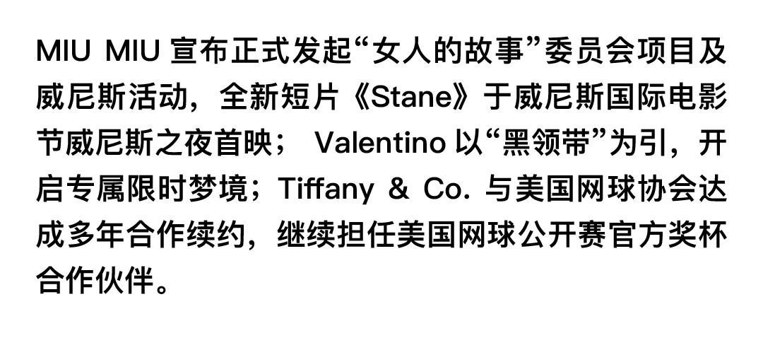 大家周一早。 在最近上映的《异人之下》《我经过风暴》《最后的真相》这三部影视剧中都有着精彩表现的演员王影璐,用富有反差感的不同角色吸引到了观众们的注意,这位新人演员在生活中是什么样子,也引发了大家的好奇。 威尼斯电影节再度来袭,而以往的精彩瞬间也被定格,与VOGUE一起回顾往年电影节中的经典时刻,感受威尼斯电影节将电影场景带至现实中的别样魅力。 与第80届威尼斯电影节几乎同时到来的还有2023年美国网球公开赛,这也再次引发了新一季的网球潮流,如果已经集齐了各种网球装备,不如用一条网球手链来变得更加引人注目,迎接球场上的耀眼时刻。 复古风与街头风,在时尚趋势中一直占据着重要地位,如何将两者进行巧妙结合,成为大家一直追求的趋势,在今年,许多人不再选择最新季度的潮流单品来吸引眼球,而是更加热衷于购买复古商品来进行演绎。 接下来,一起进入本期精彩内容。