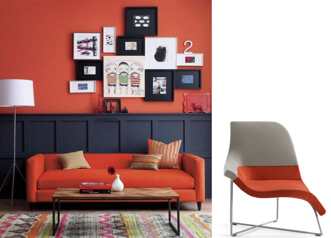 一件式大地橙单品家具,适合放在中性色的空间里。墙面是白色、米色、浅灰色的话,大地橙的家具会成为视觉焦点,又不会显得突兀;如果是深色空间,大地橙反而能提亮整体氛围。