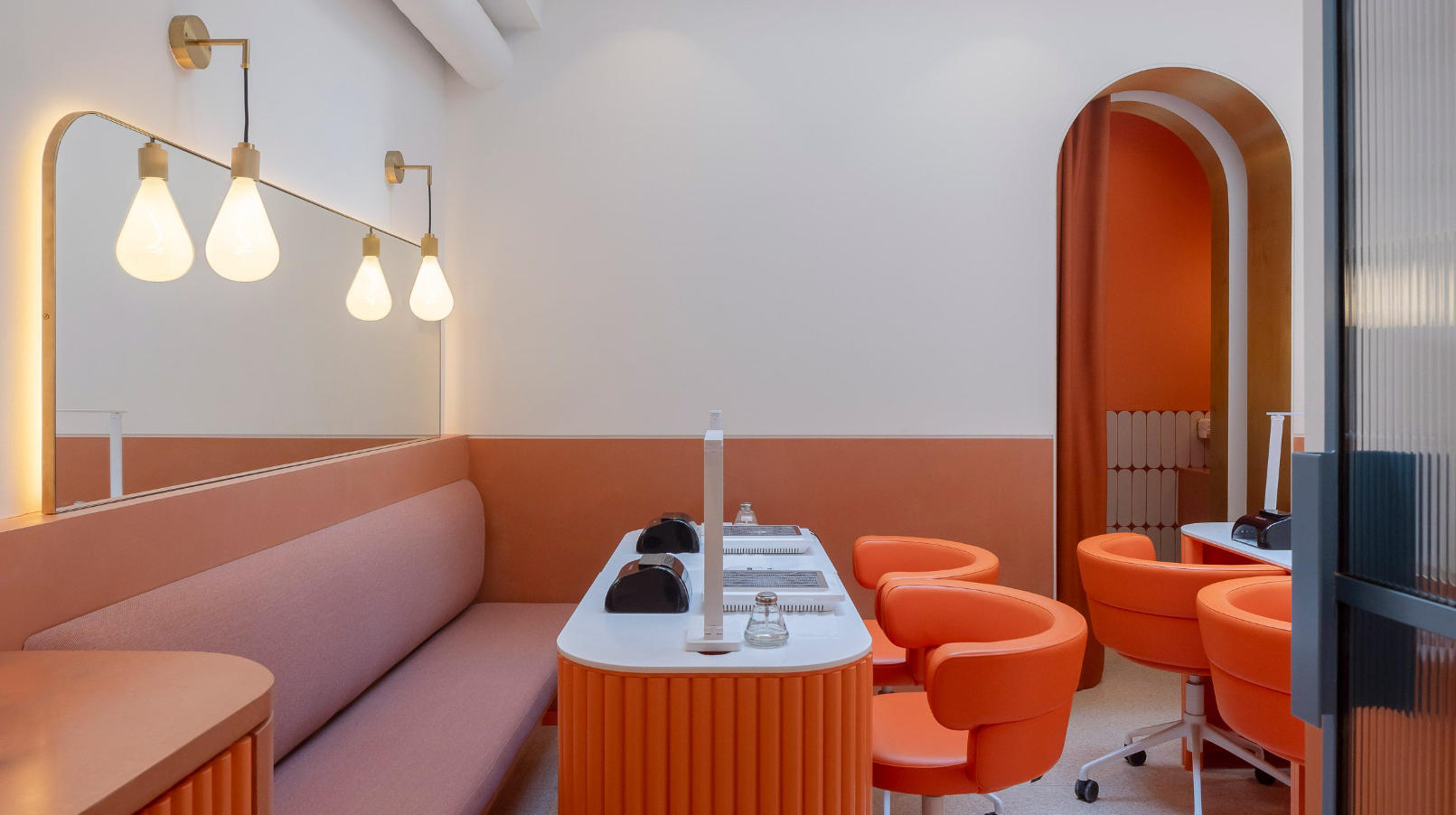 整体大地橙的空间里,就需要通过材质和深浅变化来制造层次感。墙面深一点、地面浅一点、家具介于两者之间,再搭配少量冷色调点缀,比如Kelly Wearstler常用的蓝绿色,冷暖平衡之下,能让整个空间的高级感更突出。