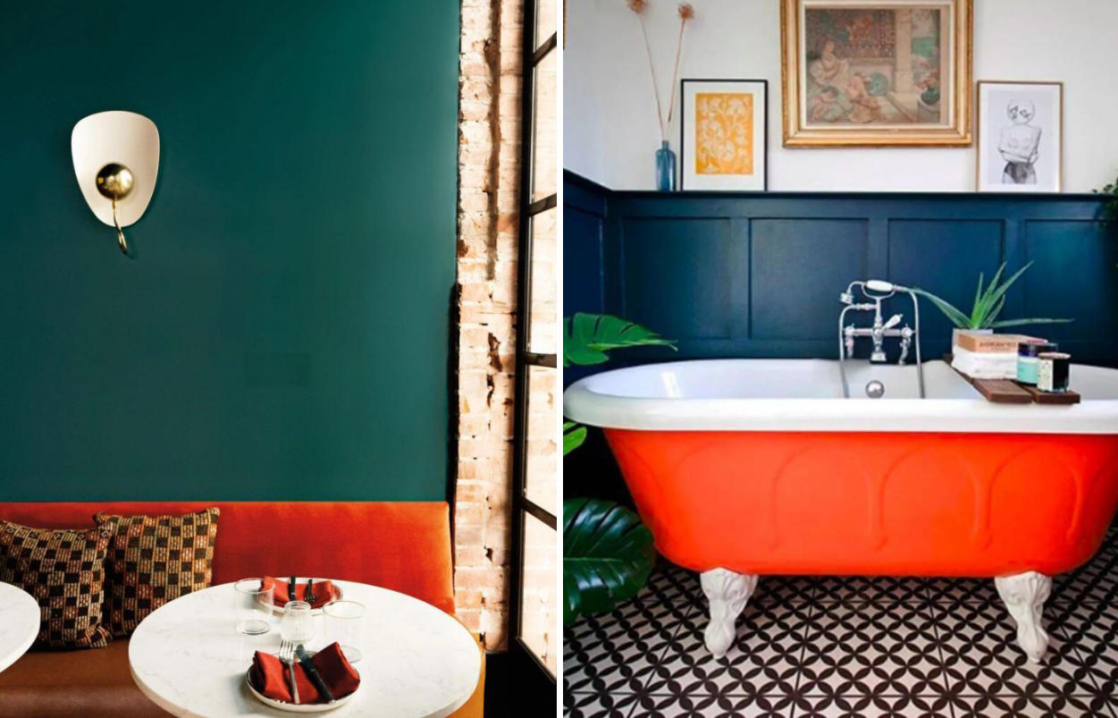 如果不好把握,就选绿色系,无论是墨绿、橄榄绿还是鼠尾草绿,都能和大地橙形成和谐的对比。要是有自然绿植,那更是天然CP。