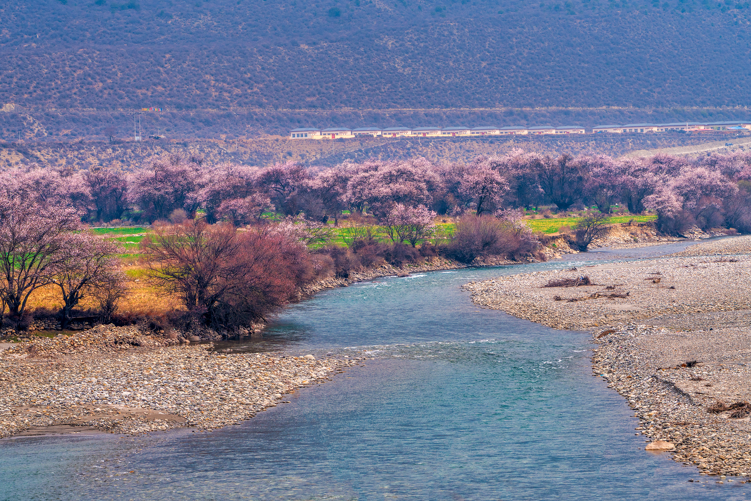 每年这个季节的林芝,都是各大旅行杂志封面的常驻嘉宾。怒放的桃花,从波密到雅鲁藏布江沿岸次第绽放,路边的野花亦是长得肆意又张扬。打卡桃花沟,背景是终年不化的南迦巴瓦峰雪山,随手一拍都自带美颜滤镜。