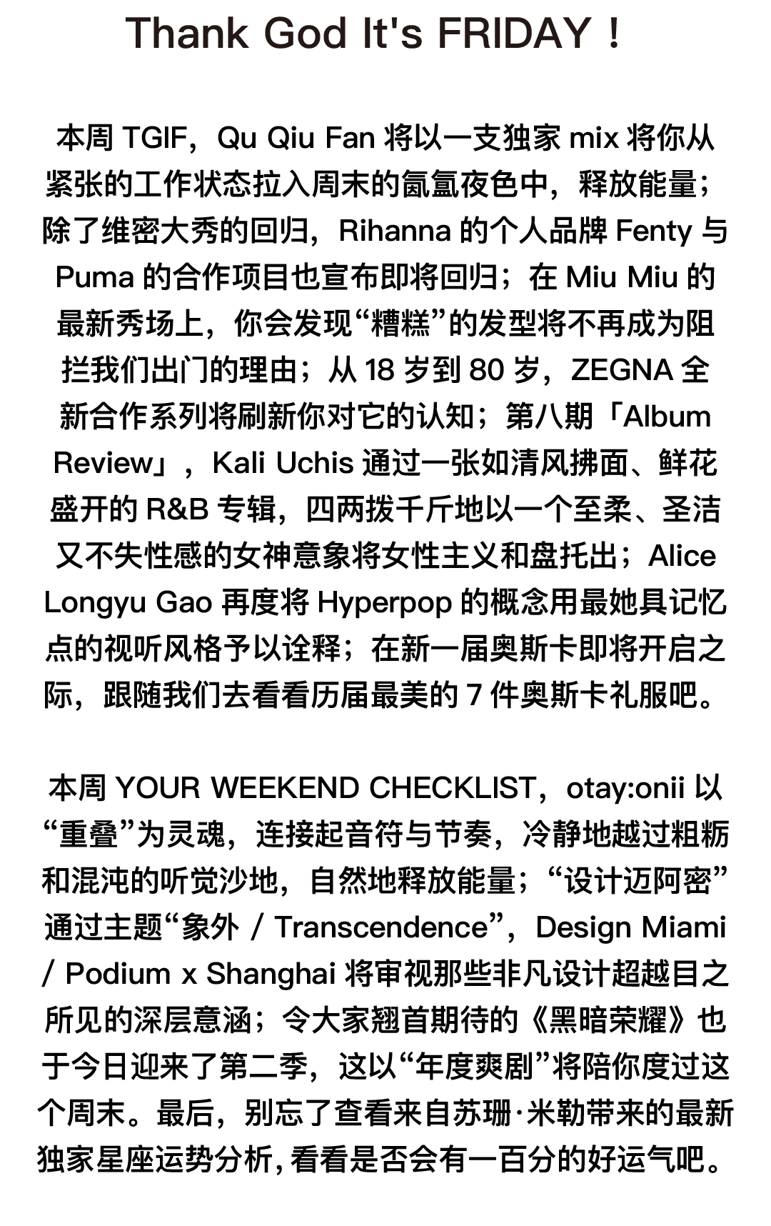 VOGUE官方小程序全新上线 点击查看往期TGIF 阅读更多VOGUE+精彩内容 编辑Mago Tang 编辑助理 Rilke、Annette、Jo、Roey 视觉设计乐乐、小乙